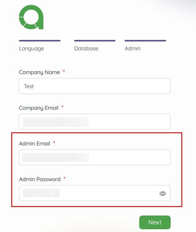 При первом посещении веб-интерфейса Akaunting вы увидите экран первоначальной настройки. В верхней части экрана вы видите три вкладки, показывающие прогресс установки: