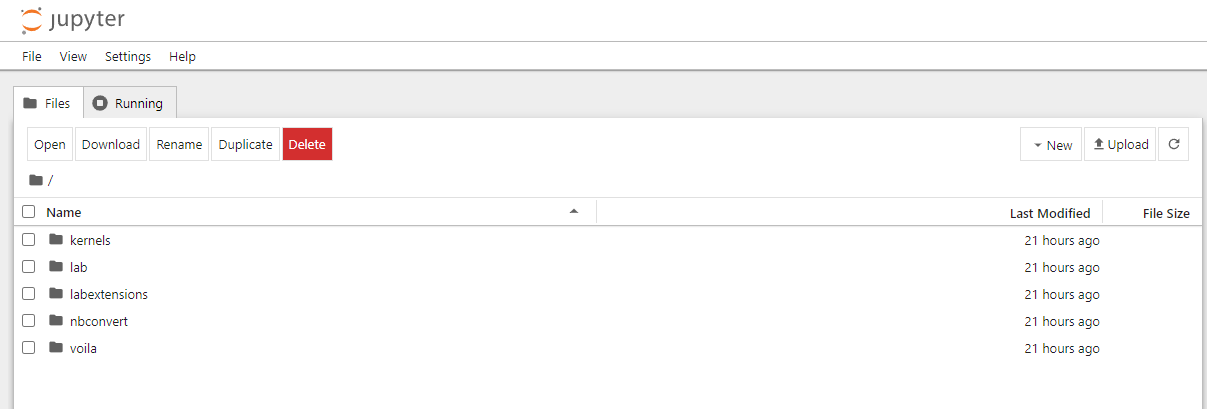 - New: создание новых файлов или ноутбуков;