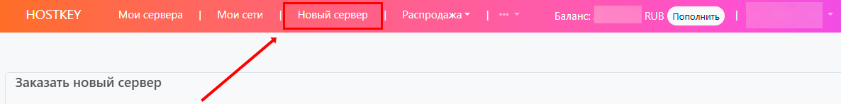 Для заказа VPS/VDS сервера в верхней навигационной панели нажмите на пункт Новый сервер . Этот пункт меню предназначен для онлайн-заказа физических (выделенных) и виртуальных (VPS/VDS/vGPU) серверов стандартных конфигураций. Эти сервера уже находятся в стойках и готовы к работе, их инсталляция после заказа занимает от 5 до 60 минут в зависимости от ОС. Весь процесс полностью автоматизирован.