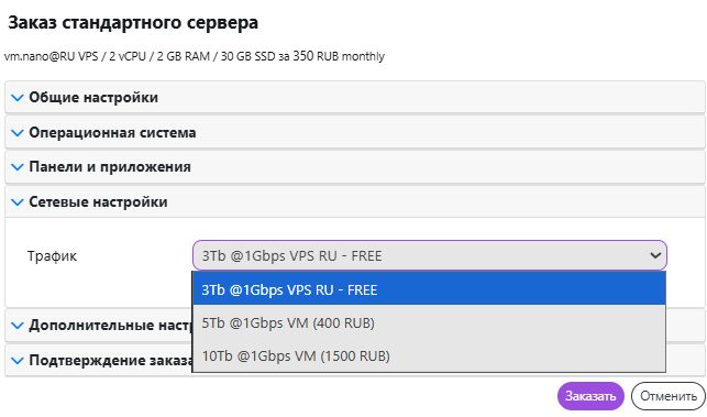 При заказе сервера обязательно обратите внимание на выбор периода оплаты в выпадающем меню Цена. Этот выбор критически важен для дальнейшего управления сервером.