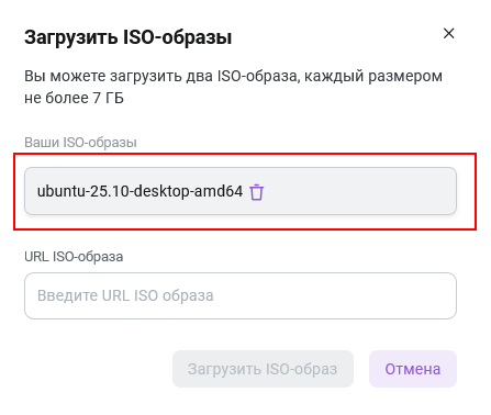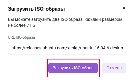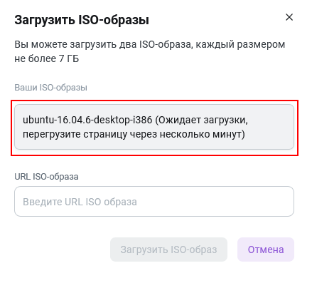 Ограничения при загрузке ISO-образов для одного аккаунта клиента: