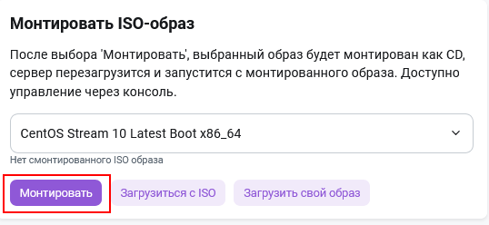 После загрузки ISO-образ появится в списке доступных образов. Выберите из списка образ, который вы хотите смонтировать: