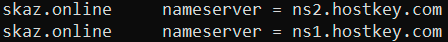 Если делегирование выполнено корректно, в ответе вы увидите наши NS-серверы: