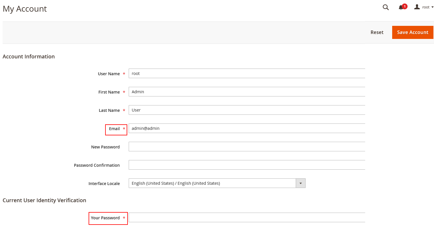 В этой вкладке вы можете указать актуальные данные профиля, а также сменить пароль. После внесения любых изменений введите действующий пароль в поле Your Password и нажмите на кнопку Save Account