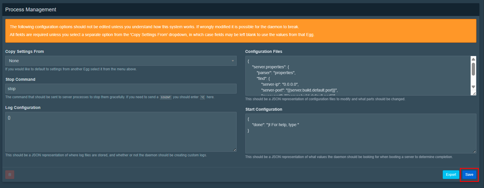 Подробная информация по основным настройкам Pterodactyl содержится в документации разработчиков.
