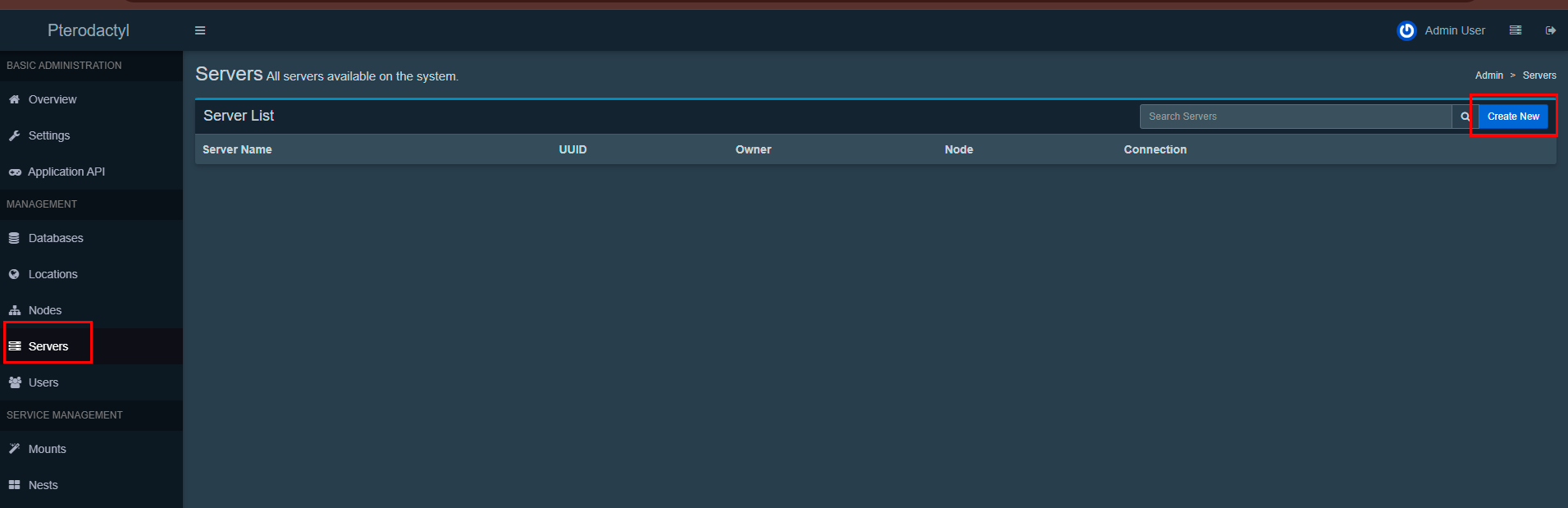 В левом меню выберите Servers;