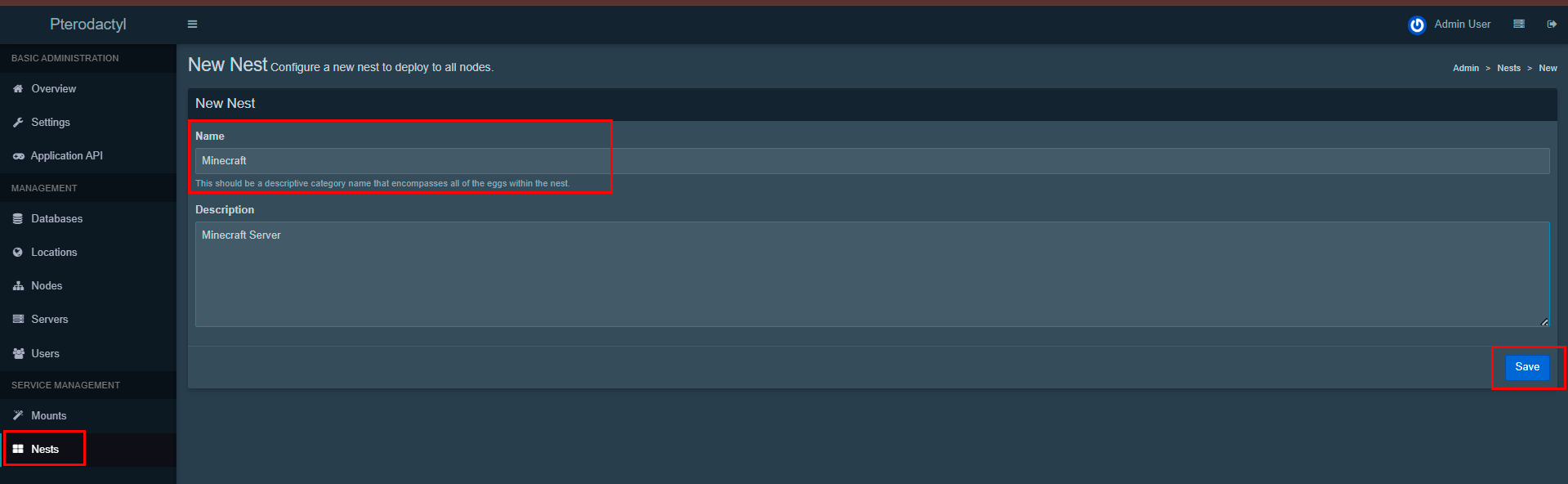 В админ-панели перейдите в раздел Nests;