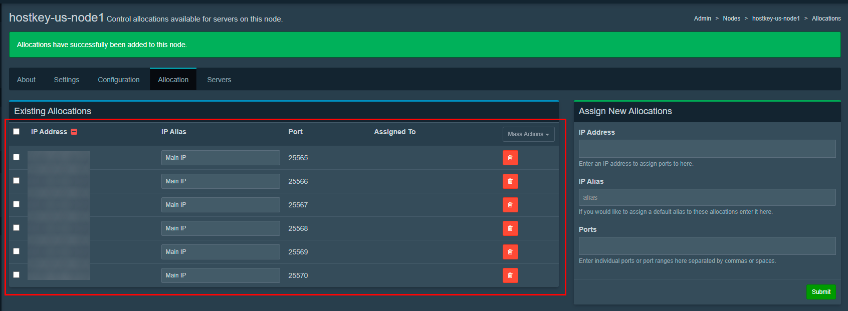 :порт из списка; - Additional Allocations: оставьте пустым.