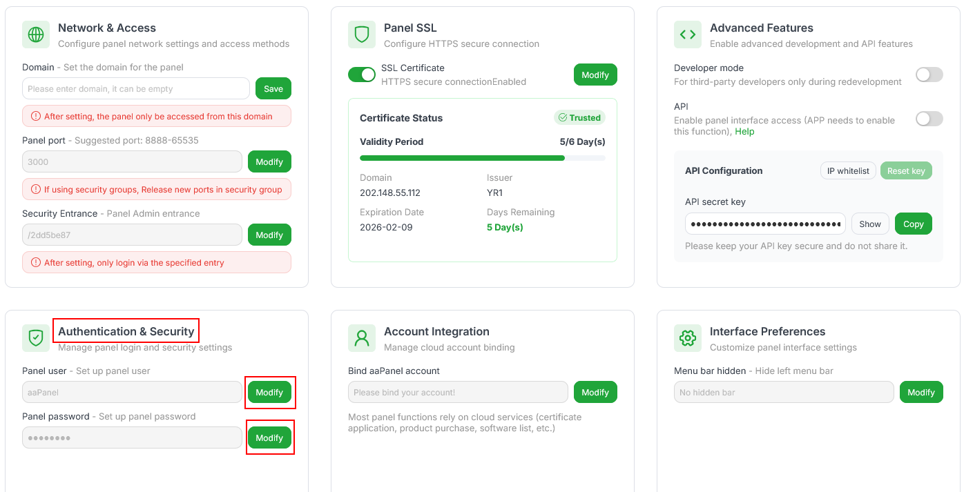 Подробная информация по основным настройкам aaPanel содержится в документации разработчиков.