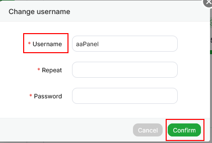 Modify, расположенную напротив поля Panel user - для изменения пароля нажмите кнопку