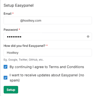 После установки EasyPanel первым шагом является создание учетной записи администратора для управления панелью и организация доступа через защищенный домен.