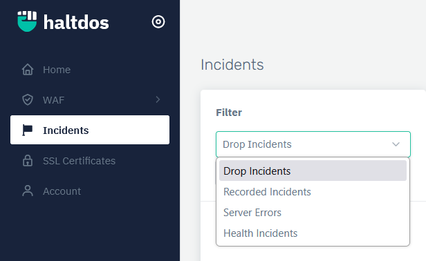 - Incidents — показывает статистику инцидентов, доступен фильтр по типу инцидента.