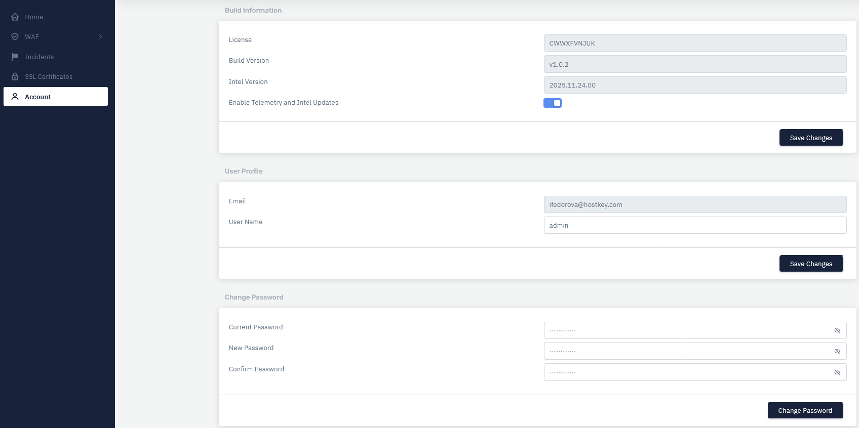 - Ссылка для доступа к Haltdos Community WAF с веб-интерфейсом: в теге webpanel;