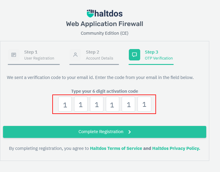 - В открывшейся форме введите Activation code, который был направлен на указанный при регистрации email: