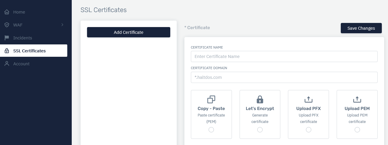 - SSl Certificates — отображает статистику применяемых SSL сертификатов. В данном меню также организован процесс добавления сертификатов.