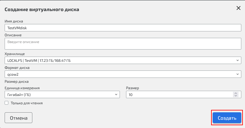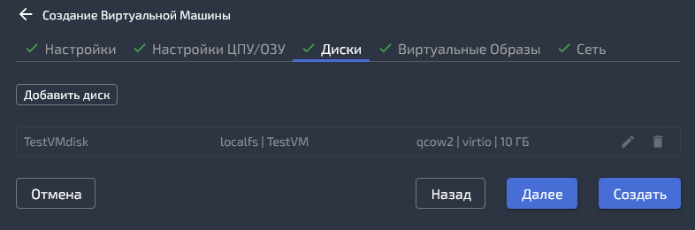 Далее создайте виртуальный диск в разделе Виртуальные диски