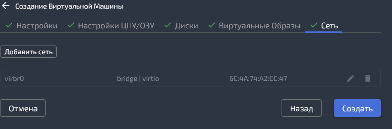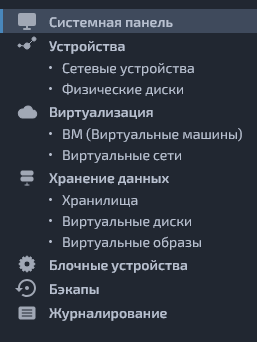 - Виртуальные сети - создание и настройка виртуальных сетей, управление состоянием.