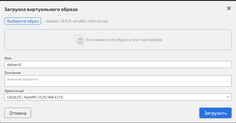 Создайте виртуальный образ для загрузки в разделе Виртуальные образы