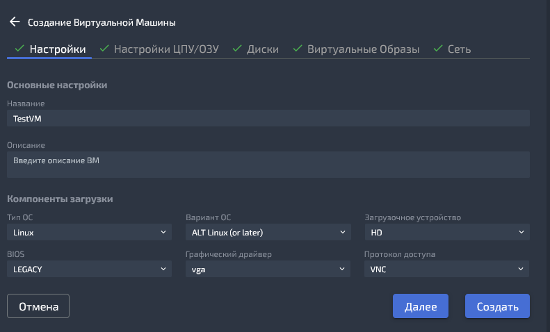 Среда подготовлена, можно переходить к созданию виртуальной машины.