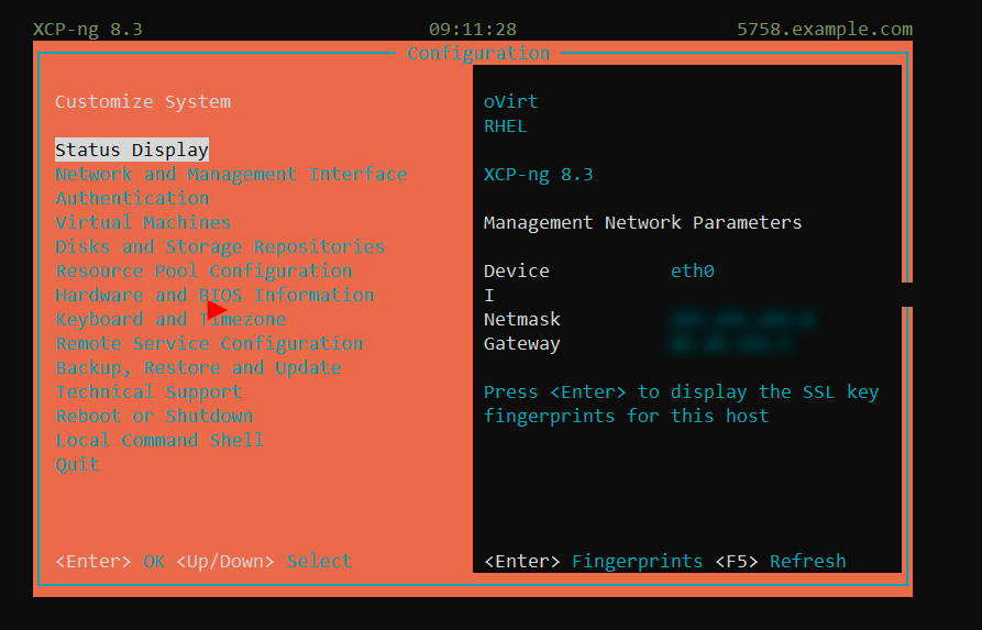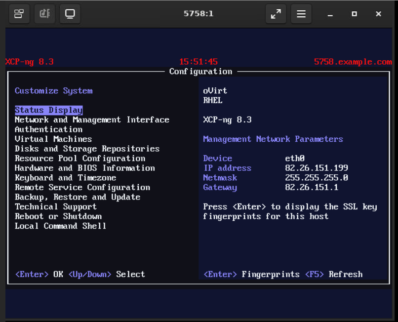 При подключении через SSH или VNC-консоль можно использовать xsconsole - встроенную текстовую консоль управления XCP-ng для конфигурации и администрирования хоста.