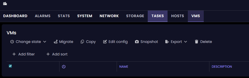 - DASHBOARD: общий обзор состояния хоста, статус виртуальных машин, использование хранилища и уведомления;