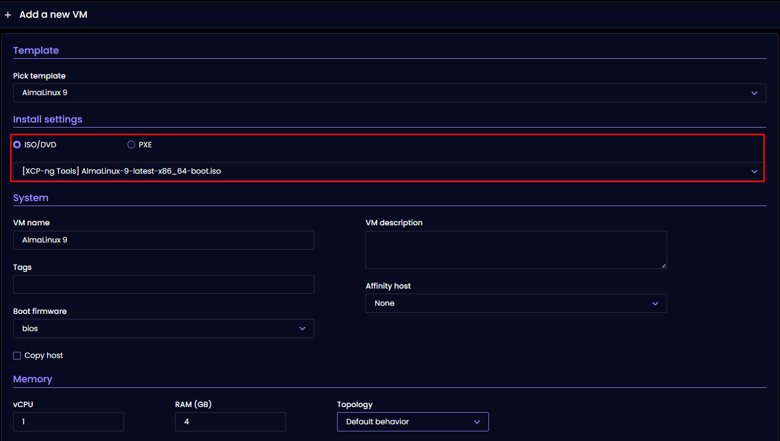 Где<UUID_SR>- это UUID, полученный на шаге 3.После этого ISO-образ появится в списке доступных образов при создании виртуальной машины.