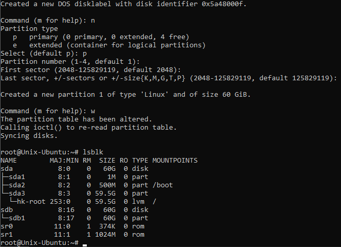 Теперь должен появиться раздел, например: /dev/sdb1.