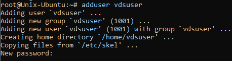 2. Создайте нового пользователя: В Ubuntu / Debian далее необходимо сразу же установить пароль пользователя. Введите его дважды, помните, что при вводе пароля символы не отображаются.