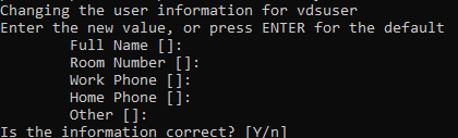 Далее в Ubuntu / Debian укажите дополнительную информацию о пользователе (можно оставить пустым).